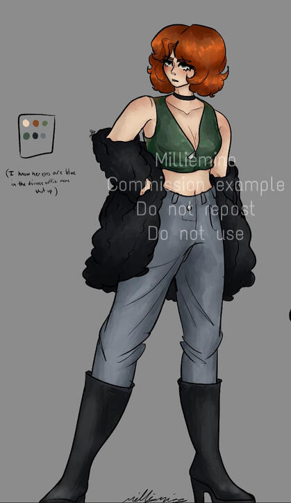 (I greatly prefer to be given a visual reference of some kind, and I can work together with you to find some! References don’t have to be 100% accurate — just something that gives me a general idea of what you’re looking for, and I can work with you for a design you’re happy with from there. Existing art of the OC, picrews, inspiration from Pinterest, etc. all work perfectly fine.)
